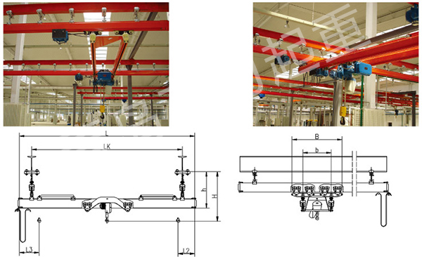 KBK柔性雙梁懸掛起重機是利用標準直線段軌道和其他輔助標準件組合而成,用于輸送較重的載荷。主梁兩端的小車部分在與主梁方向垂直的兩條平行吊掛KBK軌道中運行,雙梁與PK型環鏈電動葫蘆配套使用,環鏈葫蘆運行小車沿著主梁方向運行。