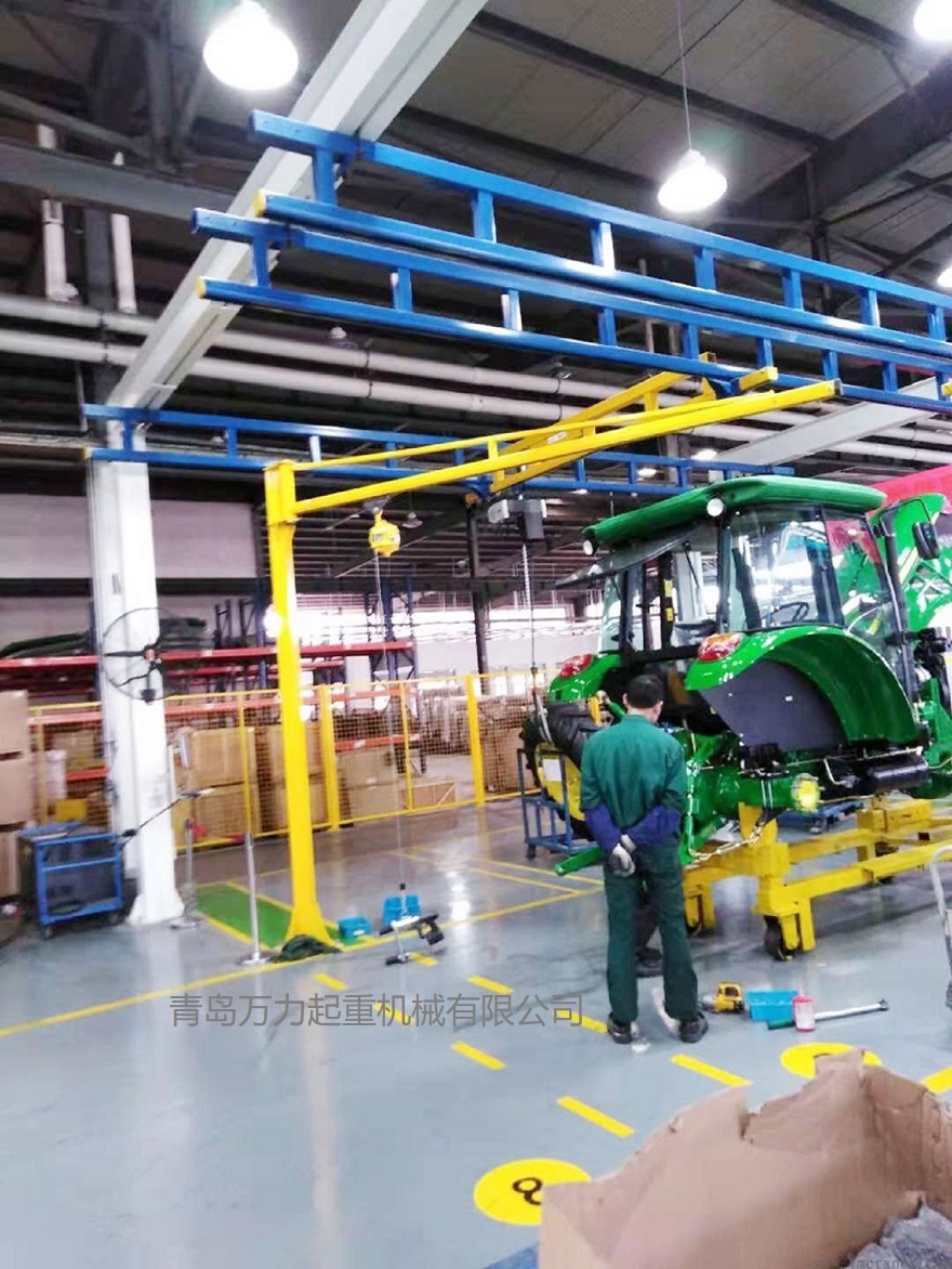 組合式起重機(jī)采用桁架式的軌道設(shè)計(jì),現(xiàn)場安裝時(shí)一般都不需額外添加鋼結(jié)構(gòu)作為支撐;柔性梁系統(tǒng)的KBK軌道則必須安裝在額外的鋼結(jié)構(gòu)下,以滿足了對輔梁的要求,與同樣規(guī)格的工位起重機(jī)比較,組合式起重機(jī)外觀更為簡潔美觀。