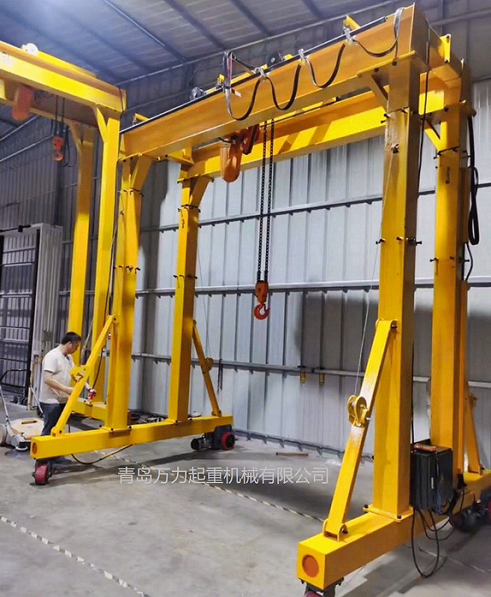 適用于制造模具、汽修工廠、礦山、工地及需要起重場合。該移動龍門架的優點是可全方位移動性,可快速拆卸安裝,占地面積小,用微型汽車就可轉移到另一個場地安裝使用。寬度、高度可分級調節,鋼架構設計合理,能承受從100~5000kg重量。尤其適用于車間設備的安裝、搬運、調節、車上貨品的裝卸搬運,汽車維修生產車間起吊柴油發動機重件等。簡單龍門架下安裝有萬向載重輪,可在整平路面上多方位中移動吊裝物件;根據電動式或人力資源大葫蘆,建立起重吊裝專業化??山档腿肆Y源,降低成本經營成本,效率提高。龍門架需依據顧客的當場狀況訂制不一樣的商品。中移動小龍門架吊裝大葫蘆可采用手動葫蘆或電葫蘆,商品應用性強。