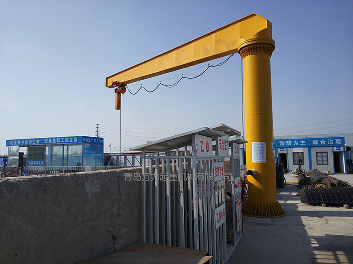 要設計方案的專用型起重機械。具備構造新奇、有效、簡易、實際操作方便使用、旋轉靈便、安全作業室內空間大等優勢,是環保節能高效率的原材料吊裝武器裝備。可普遍運用于廠礦、生產車間的生產流水線、裝配流水線和數控車床的上下左右鋼件及庫房、港口等場所的吊物吊裝。本機由立桿、旋轉懸臂及環鏈電動葫蘆等構成。立桿下方固定不動于混凝土基本上,懸臂旋轉,可依據客戶要求開展旋轉。