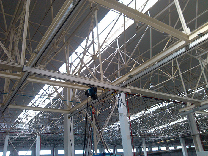 鋁合金軌道組合式起重機(jī)械系統(tǒng)需要客戶的廠房屋頂結(jié)構(gòu)可承受足夠強(qiáng)度、安全支撐起重機(jī)負(fù)載;