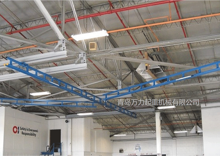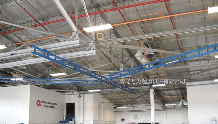 當地面空間有限,懸掛式安裝可在不影響生產的前提下提供安全防護。懸掛式系統可利用廠房現有鋼結構來做掛點,不需要立柱支撐,解放了。地面的空間,因此非常適合應用在屋頂很高的工廠和倉庫之中。剛性軌道的緊湊、低凈空懸掛式設計,即使是在高度標準的廠房中應用,也不需要擔心凈空高度的問題。