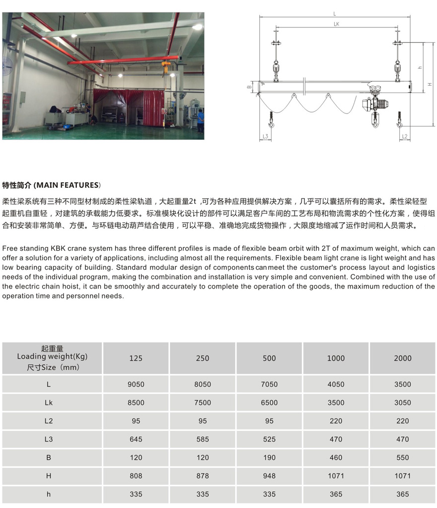 KBK柔性輕型組合式懸掛起重機(jī)的產(chǎn)品特點(diǎn)概述如下: